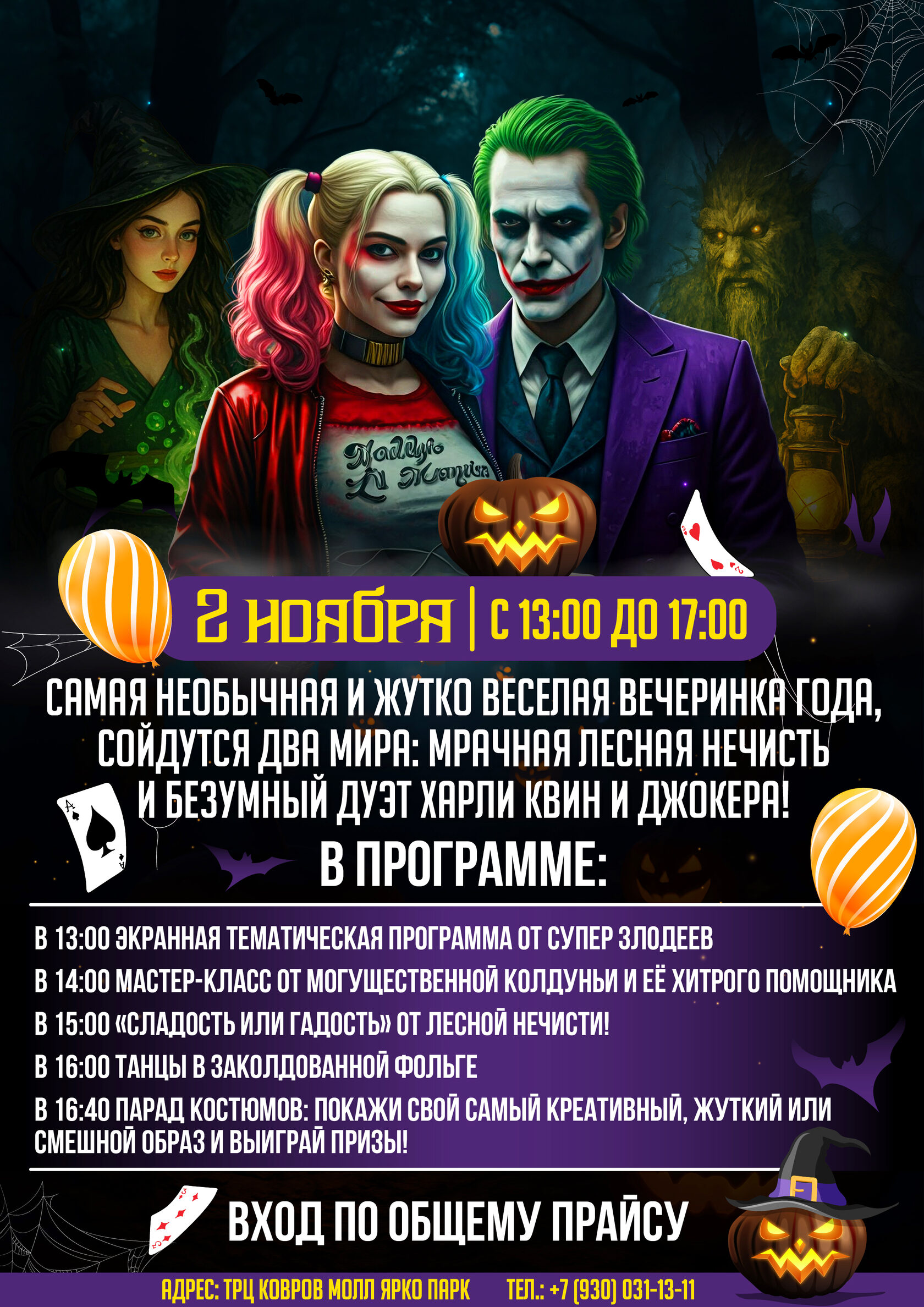 2 ноября в ЯРКОПарке сойдутся два мира: мрачная лесная нечисть и безумный дуэт Харли Квин и Джокера!